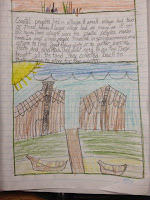 In socials there was a bonus one page report on the Haida Villages. Coastal people lived in villages with as few as two or three houses or larger villages of up to 15 or 20 houses. People traveled during the spring, summer and autumn but usually spent winters in their villages.
