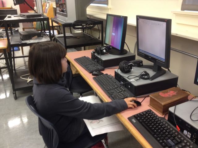We began the day in the computer lab. The students worked on making a PowerPoint presentation on a type of animal that served in the war.
